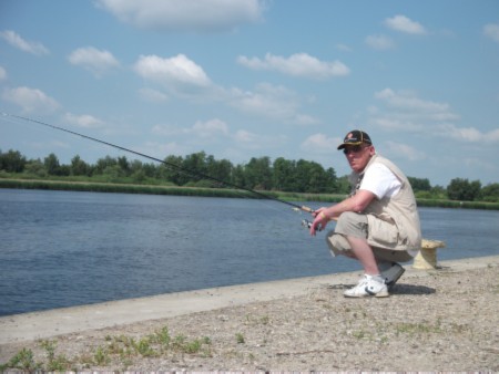 Mniej więcej o siódmej rano zacząłem swoją wędrówkę za mętnookim. Jak już wspominałem pogoda pod psem, wiatr hasa po łowisku, drzewa zachowują się jak na karuzeli i wędkarzy jak na tą porę roku jakoś mało. Nic dziwnego bo przecież nawet kaczki z tegorocznym potomstwem nie ryzykują pływania i siedzą gdzieś bezpiecznie w szuwarach. Niema również mojej koleżanki, siwej czapli, która często rechocze z moich wyczynów. Oczywiście stojąc na jednej nodze, bezpiecznie po drugiej stronie kanału.