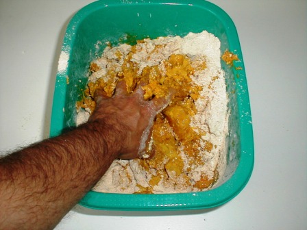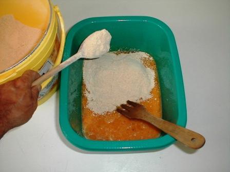Aby zrobić kulki proteinowe musimy w odpowiedniej kolejności połączyć ze sobą wiele produktów i poddać je wielu procesom, w tym gotowaniu suszeniu i przechowywaniu. Na początek połączmy ze sobą suche składniki naszego miksu wsypując je do dużego naczynia i mieszając na sucho bardzo dokładnie. Można to zrobić na stolnicy jednak korzystając z naczynia o wysokich ściankach nie narobimy tyle kurzu. Ważna uwaga wszystkie naczynia i narzędzia stosowane do produkcji kulek proteinowych muszą być naczyniami spożywczymi. Nie wykorzystujemy do produkcji kulek naczyń, które wcześniej były stosowane do innych celów. Błędem jest wykorzystywanie misek, w których wcześniej była woda z detergentem na przykład do mycia podłóg. Karp ma dobry węch i jeśli taki detergent został na ściankach tego naczynia, to jego zapach przeniknie do kulek proteinowych. My tego nie wyczujemy ale karp takie kulki ominie szerokim łukiem. Najlepiej jeśli do produkcji kulek kupimy sobie kilka zupełnie niezaangażowanych w prace gospodarstwa domowego naczyń.